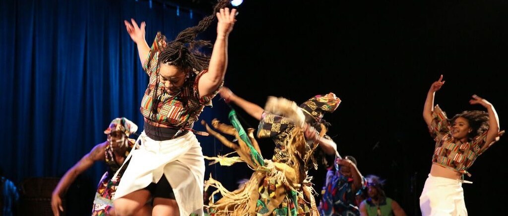 Junior dancers from the Asase Yaa School of the Arts in a scene from the African American Dance Theater’s production of “Drum Love” (Photo credit: Solwazi Afi Olusola)