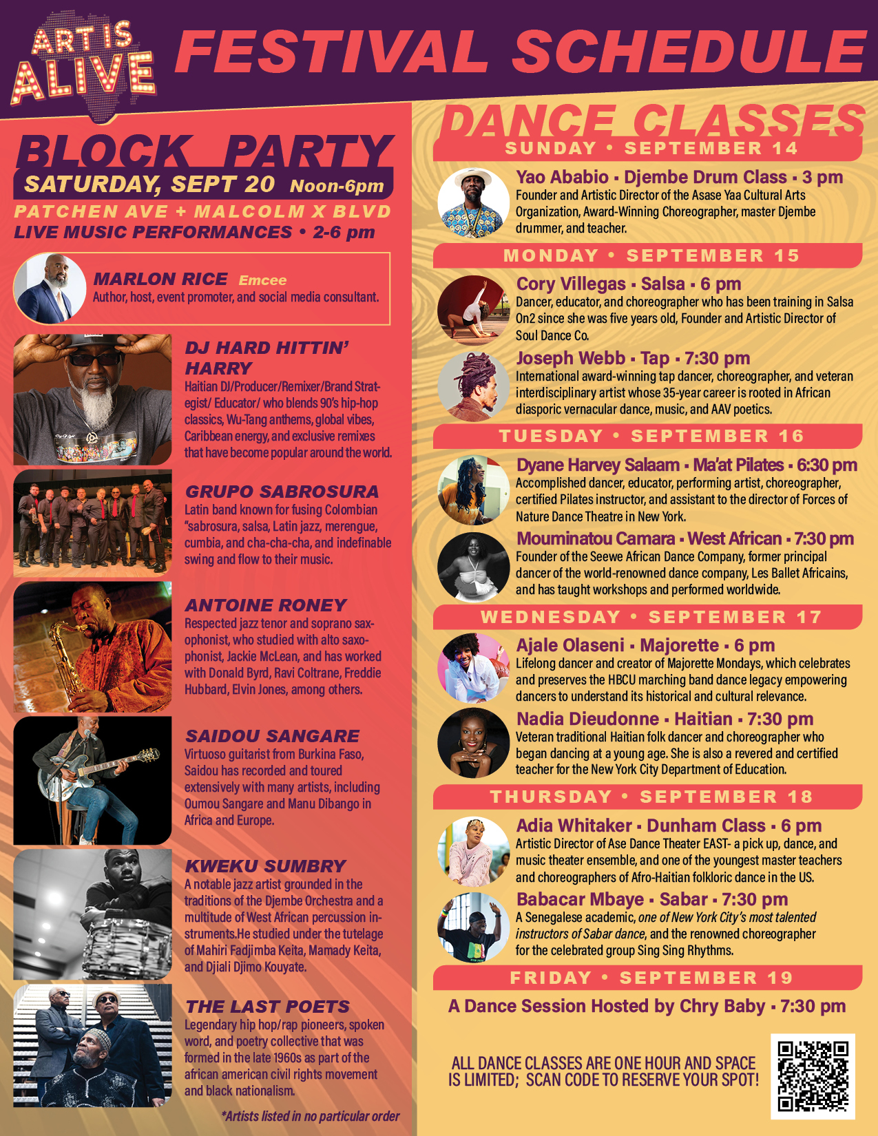 For seven unforgettable days, immerse yourself in 20+ hours of programming featuring 10 unique dance classes with celebrated instructors, a high-energy block party with five music artists, and inspiring community awards, workshops, and family activities for all ages.
